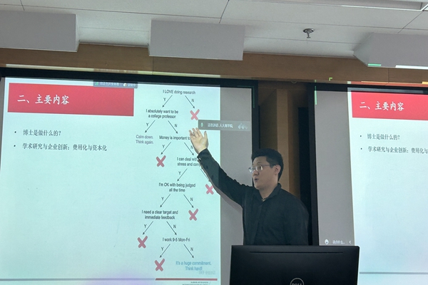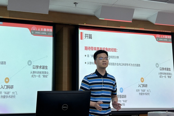 三位博士生从自身的学习体会出发,介绍了纬来体育官方网站 的资源平台情况,比如学系双周学术讲座、A刊闭门工作坊、博士生学术论坛、海外教授面对面等活动,重点讲解了硕博项目的课程训练体系、科研锻炼提升收获、海外联合培养支持、企业调研实践机会,以及攻读博士学位过程中遇到的困难和解决方式。三位博士生都提到,学术研究需要严格的训练,从选定研究方向、提出研究问题、掌握研究方法,到最后撰写论文成果并获得发表,需要足够的耐心和持续的毅力,是一个守得云开见月明的过程。在有挑战性的博士学习过程中,也有丰富的机会开展国内外交流,既能开拓学术视野,又能提升个人综合能力。三位博士生对于纬来体育官方网站 一直秉承“扎根中华大地做研究”的理念深感认同,通过扎实的理论基础学习,再面向世界进行探索交流,才能更好地推进自主知识体系的实现,博士生在这个过程中也做出了重要的贡献与力量。