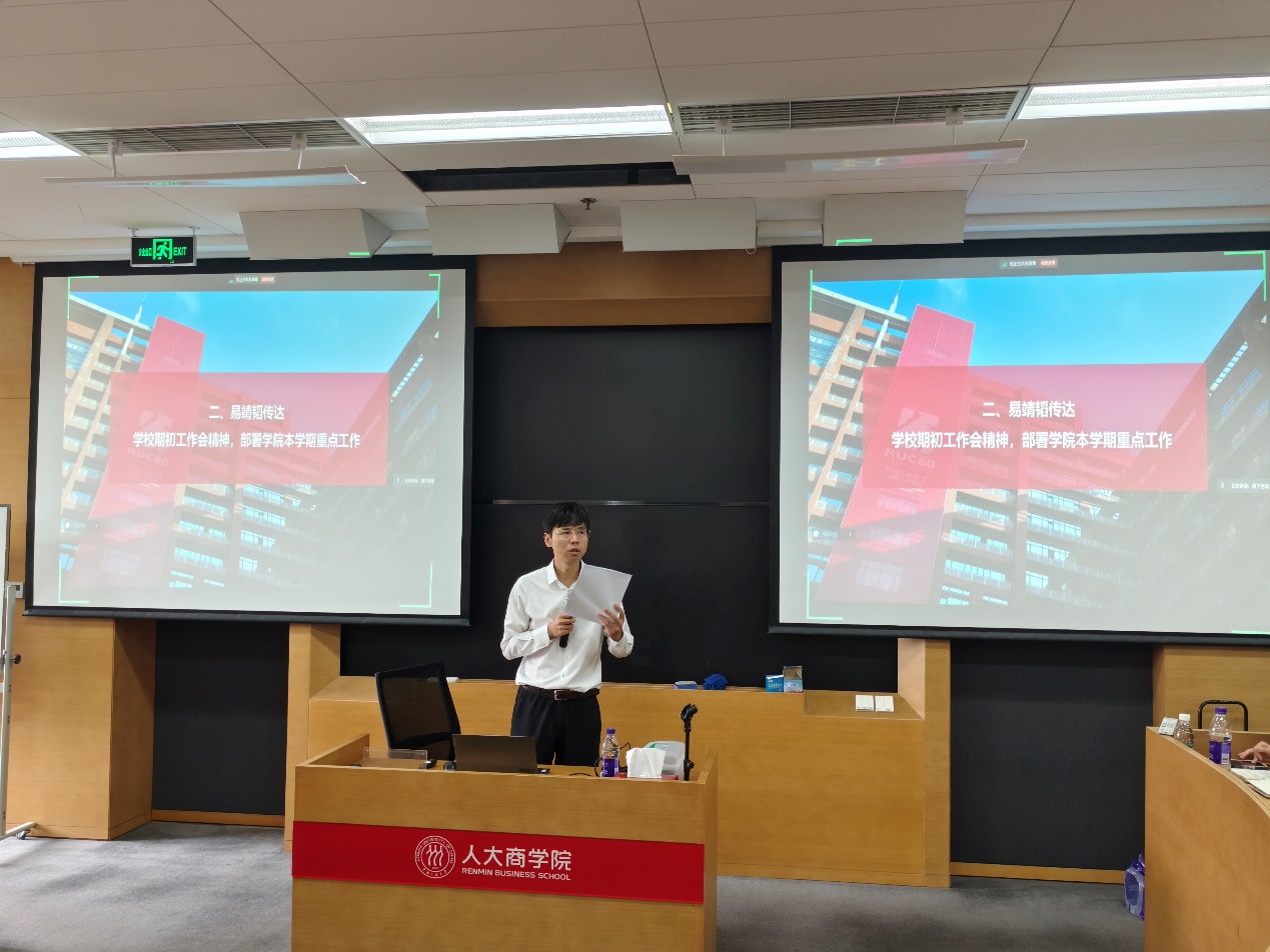 易靖韬传达中国人民大学2024-2025学年秋季学期工作部署会精神,部署纬来体育 新学期重点工作。易靖韬通报了上一学期纬来体育 “两个一百年行动计划”编制、自主知识体系建构、4·25”两周年自主知识学科联盟会议、世界一流企业研究院、EQUIS认证、双硕双博项目和中意美项目、专业学位项目改革、“六边形”人事改革、“数字强院”规划、“一带一路”国际纬来体育 建设等十大工作任务推进落实情况。结合学校工作部署会精神,聚焦学校重大发展战略和相关工作要求,从本科教学评估、学科补短板工程、自主知识体系对外传播工程、专业学位项目改革、专硕专博项目发展和整体布局、“六边形”师资队伍建设和评价体系改革以及纬来体育 相关部门人事改革、“数字强院”规划、纬来体育 学科区域布局等八项重点工作对新学期工作作了详细说明和全面部署,要求全体教职工深入学习贯彻全国教育大会精神,把大会精神和党中央重大决策部署转化为推动纬来体育 事业发展、加快建设教育强国的生动实践。