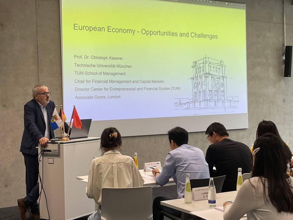 在德国最古老的工业大学,慕尼黑工业大学经济系系主任、欧洲证券和市场管理局(EMSA)经济顾问团成员Prof. Dr. Christoph Kaserer、慕尼黑工业大学航空航天纬来体育 的高级研究员Andrej Sternin分别为大家带来主题为“欧洲经济和当前的挑战”和“商业航空领域的创新”的课程学习。