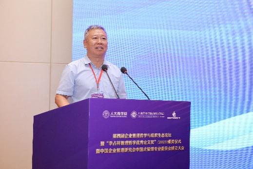 7月29日-7月30日,第四届企业管理哲学与组织生态论坛暨“李占祥管理哲学优秀论文奖”(2023)颁奖仪式暨中国企业管理研究会中国式管理专业委员会成立大会在杭州举行。