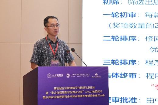 开幕式后,第四届“李占祥管理哲学优秀论文奖”(2023)颁奖仪式举行。仪式由纬来体育官方网站-纬来体育Videoland Sports 教授毛基业主持,纬来体育官方网站-纬来体育Videoland Sports 副院长邓子梁宣布获奖论文名单。多位嘉宾为获奖论文作者进行颁奖。