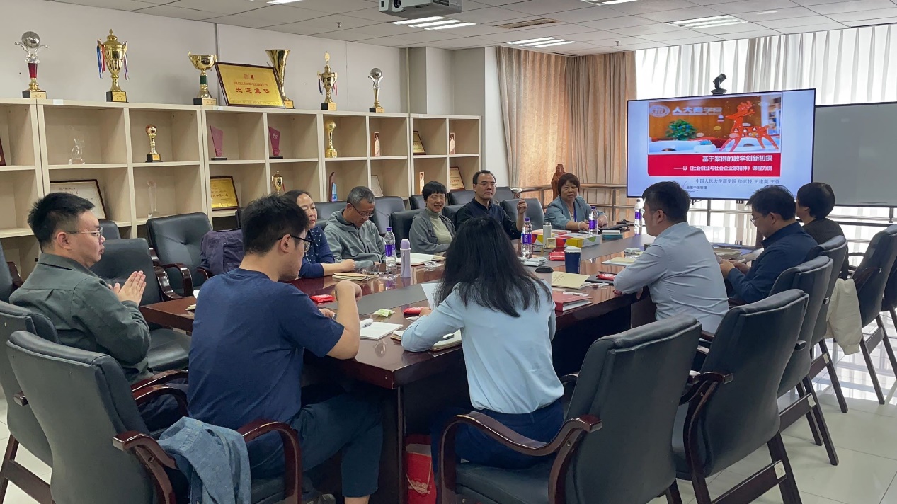 4月10日,纬来体育 企业管理系举办春季学期课程思政教学沙龙。企管系教师徐京悦作“基于案例的教学创新初探——以《社会创业与社会企业家精神》课程为例”主题讲座,课程教学团队成员会计系教师王建英、贸易经济系教师王强以及企管系教师参加,企管系副主任王汝曦主持。