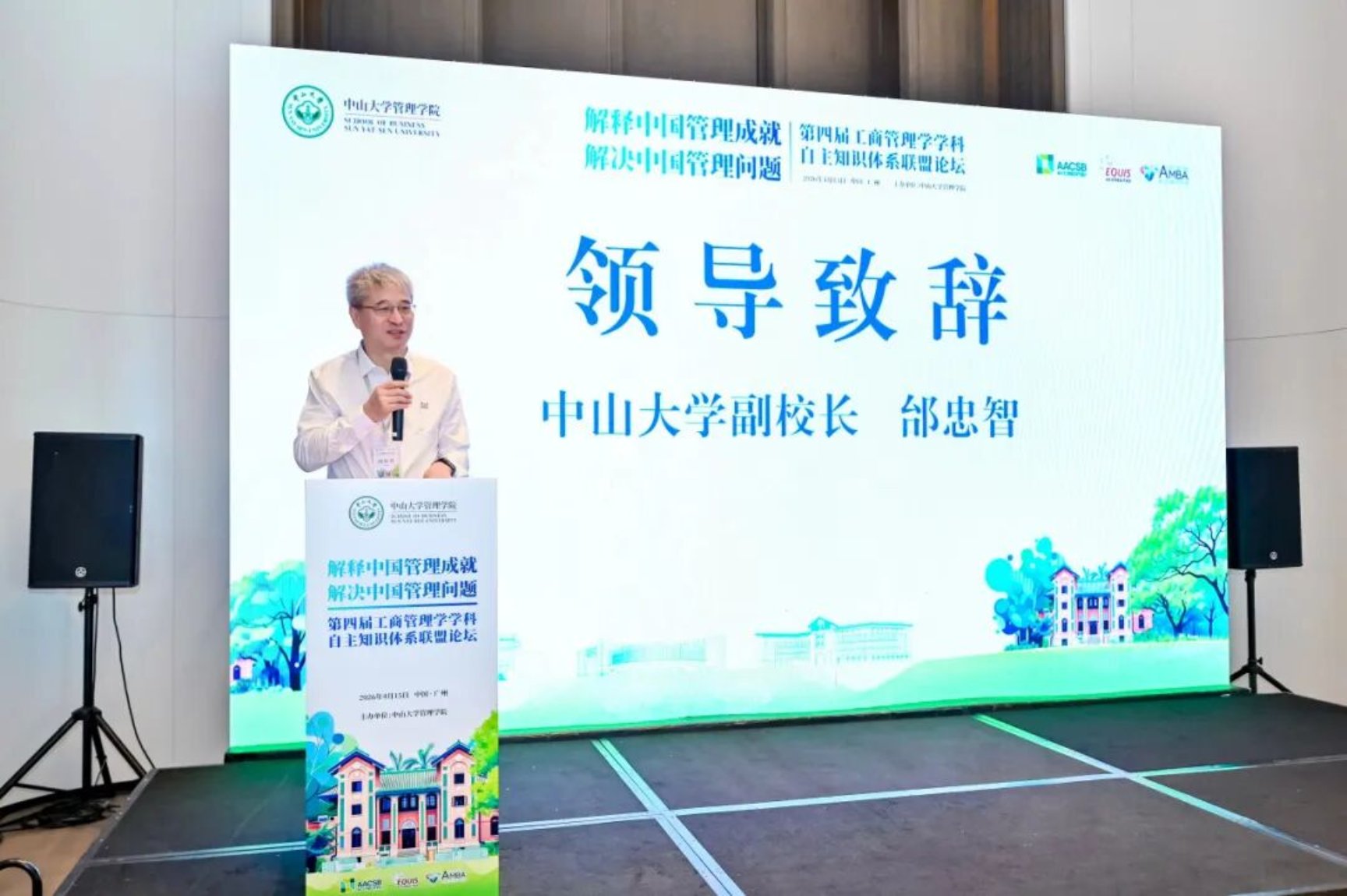 中国人民大学副校长支晓强与中山大学副校长邰忠智在论坛上致辞。支晓强祝贺论坛顺利举办并表示,工商管理学科发展要坚持三个“必须”:必须坚守正确方向、必须聚焦核心任务、必须坚持科技自立自强、自主知识体系与自主人才培养相结合,希望联盟各成员单位携手合作,努力构建良好的学科生态。