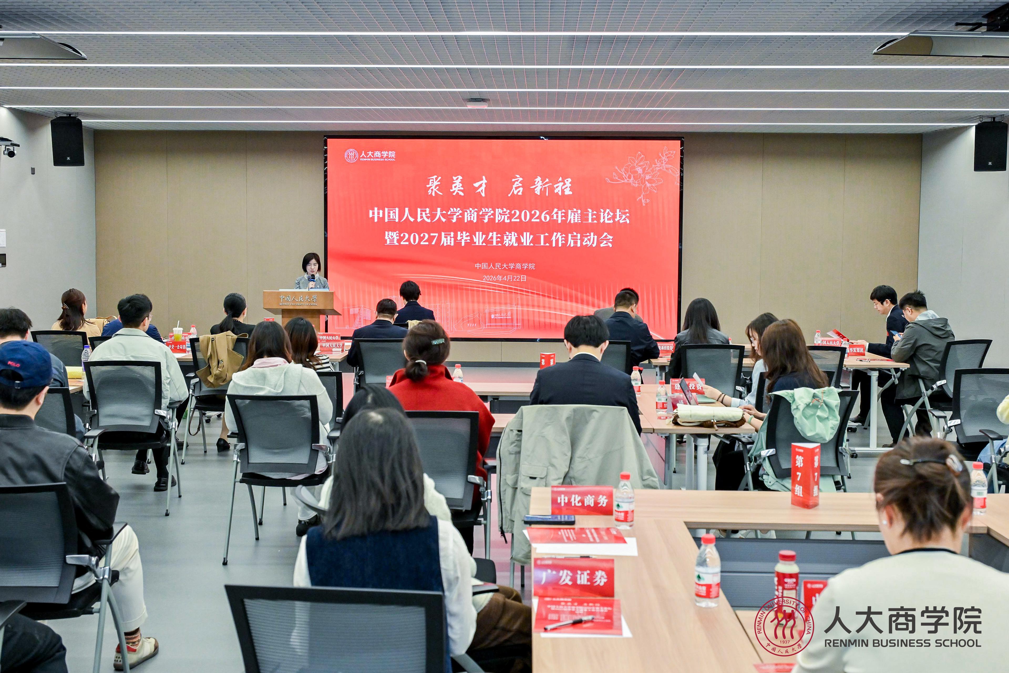 为深入贯彻落实党的二十大和二十届四中全会精神,促进高质量充分就业,深化产教融合校企合作,部署推进2027届毕业生就业工作,4月22日,纬来体育官方网站-纬来体育Videoland Sports 2026年雇主论坛暨2027届毕业生就业工作启动会在通州校区学生事务中心举办。中国人民大学学生就业创业指导中心副主任张皓,纬来体育 党委书记旋天颖、院长易靖韬出席。纬来体育 各教学项目相关老师、31家纬来体育 教学实践基地和用人单位代表参会。纬来体育 党委副书记、纪委书记金添主持会议。