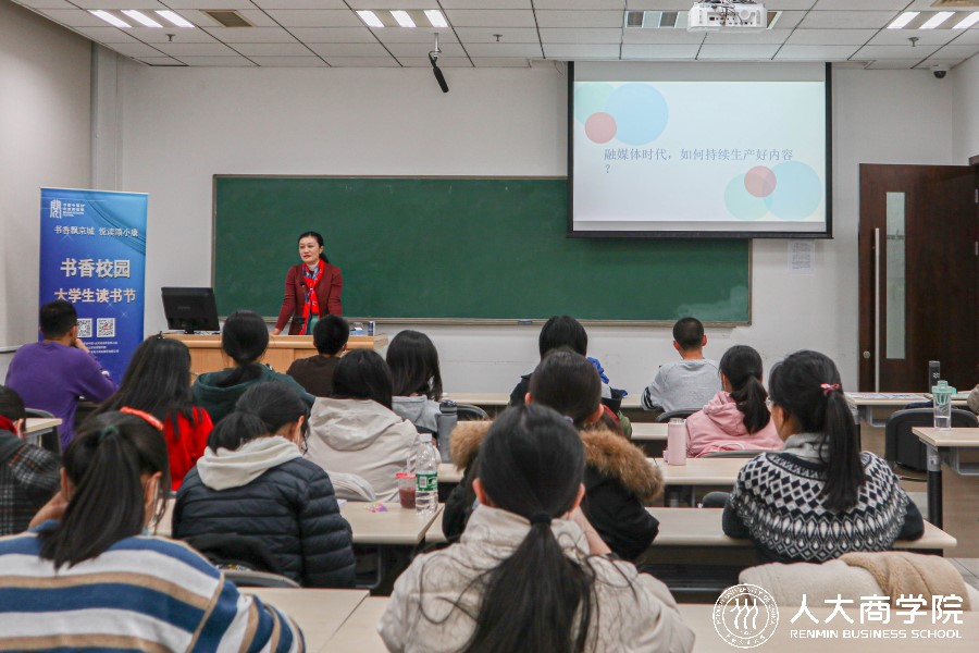 职业发展中心、“勇往职前”职业发展俱乐部联手“第十届书香中国·北京阅读季北京大学生读书节”举办的“融媒体时代如何持续生产好内容”主题讲座在明德商学楼04...