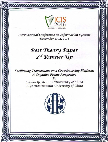 2016年12月9—14日,2016年国际信息系统年会(International Conference on Information Systems, ICIS 2016)在爱尔兰都柏林...