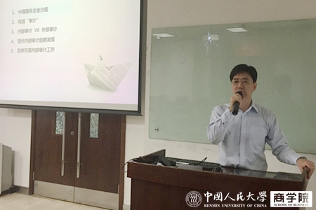 MPAcc项目中心主办的“会计领军论坛”邀请到中国南车股份有限公司审计和风险部副部长兼内控风险处处长陈震晗校友,为MPAcc学生做了主题为“内部审计的前世今生...