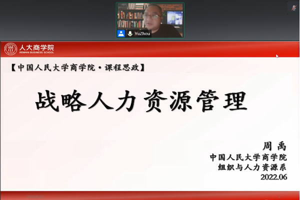 主题分享环节,周禹介绍了《战略人力资源管理》的课程思政内...