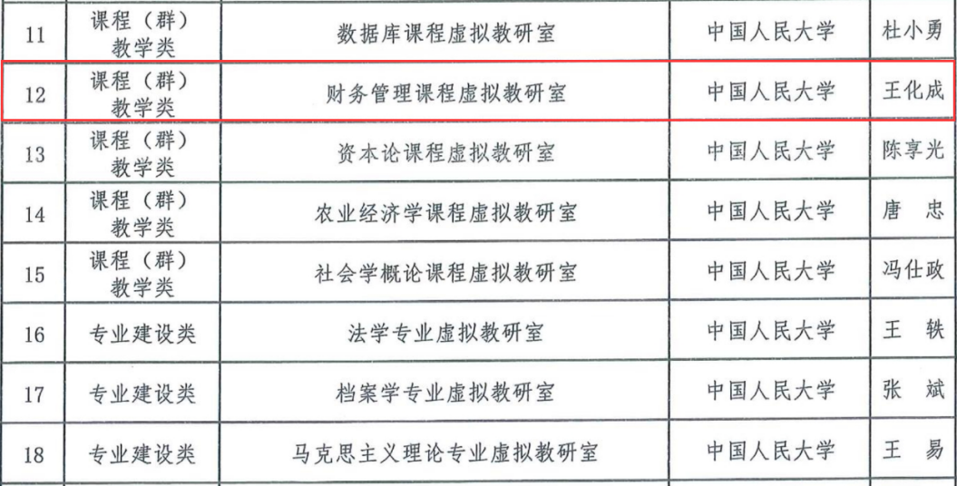 近日,教育部公布了首批虚拟教研室建设试点名单,中国人民大学财务管理虚拟教研室入选。该虚拟教研室团队的带头人为纬来体育官方网站